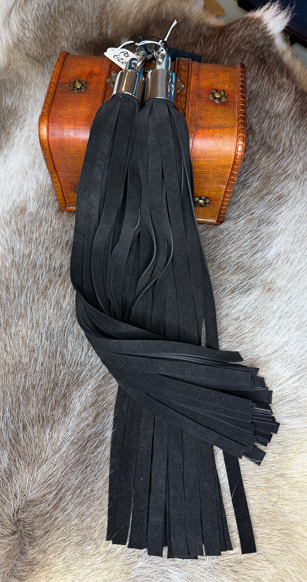 Our bespoke fetish products and floggers come in many different leathers, including smooth topside, suede, moss back suede, calf skin, american badger, kangaroo and many more. We offer a variety of colours and fall widths & lengths.